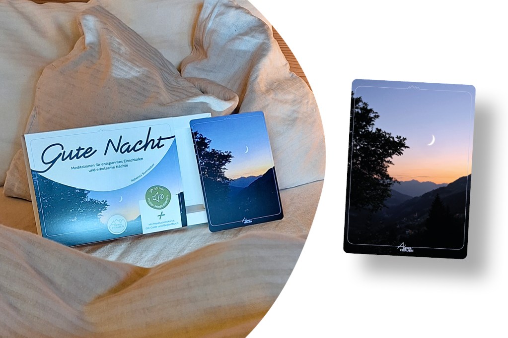 - jeweils 3h 30min Audio-Meditationen + Meditationskarte + Begleitheft
